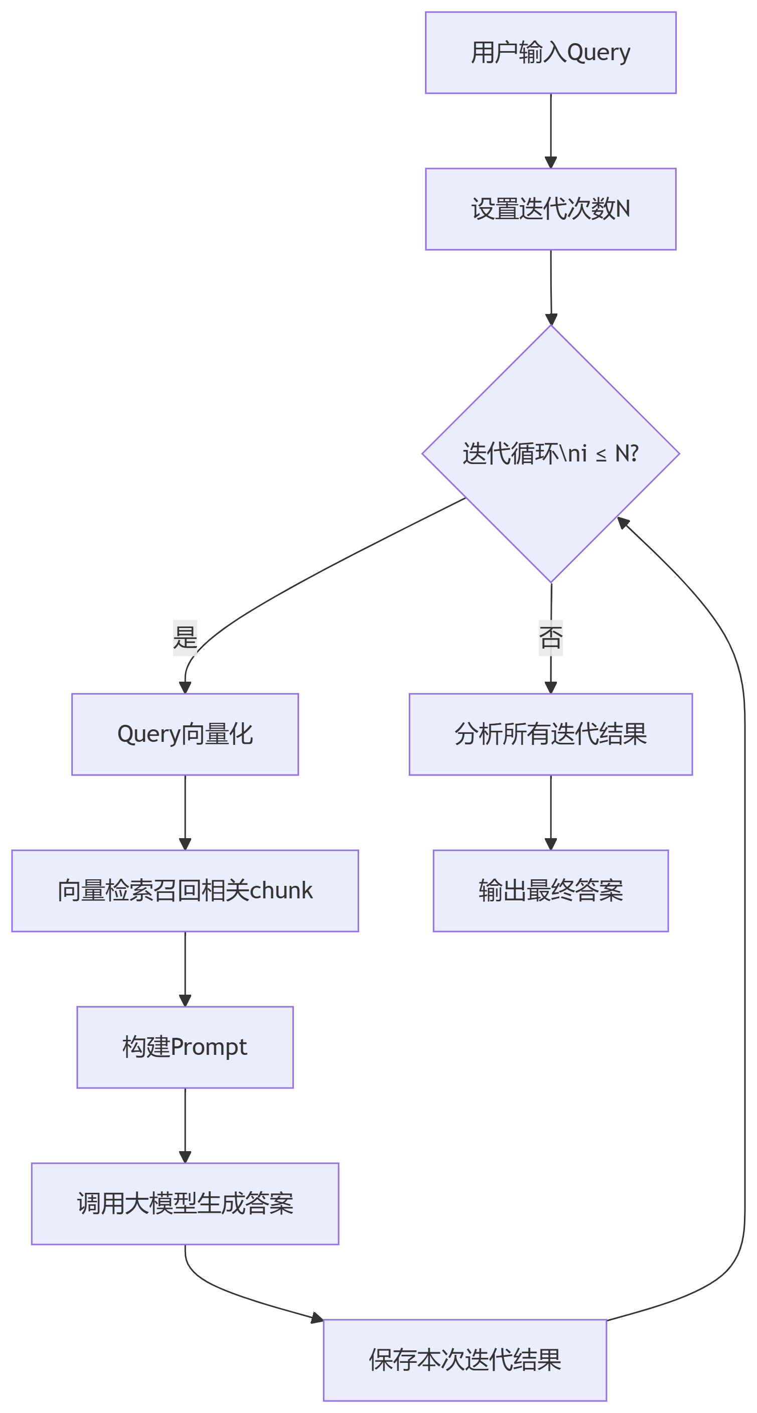 迭代式检索增强 突破传统单次检索的局限,采用多轮迭代的方式逐步优化检索结果。每一轮迭代都会基于前一轮的结果进行深度分析和改进,从而不断提升最终答案的质量。
